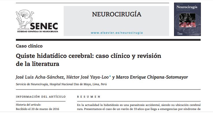 Quiste hidatídico cerebral: caso clínico y revisiónde la por el Servicio de Neurocirugía, Hospital Nacional Dos de Mayo, Lima, Perú.