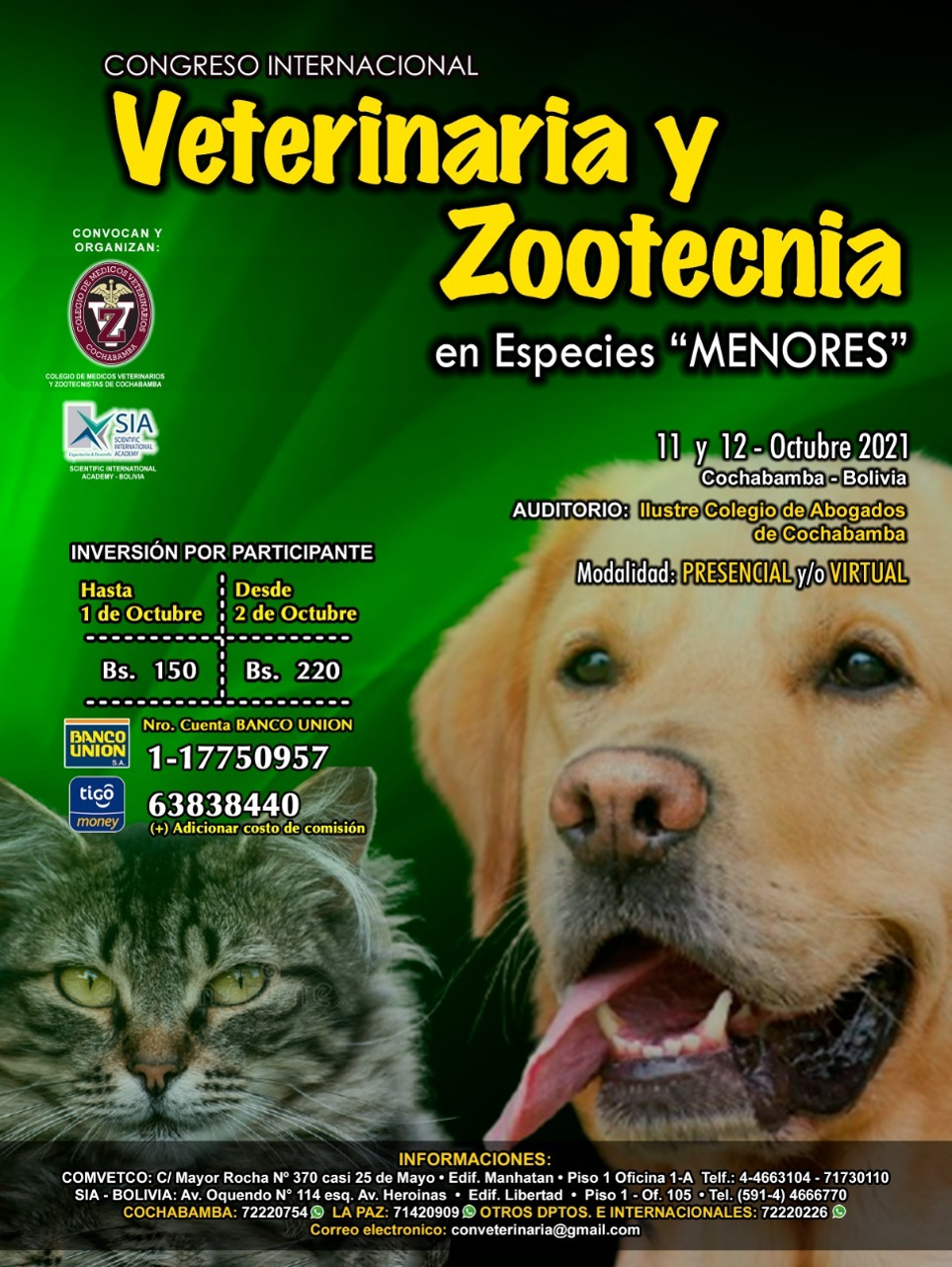 9no. CONGRESO INTERNACIONAL DE VETERINARIA Y ZOOTECNIA. Cochabamba. Bolivia. Octubre. 2021