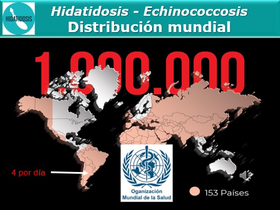 A nivel mundial, la OMS estima que en cualquier momento del año hay alrededor de un millón de personas afectadas por hidatidosis, distribuidas en más de 153 países con casos registrados.
